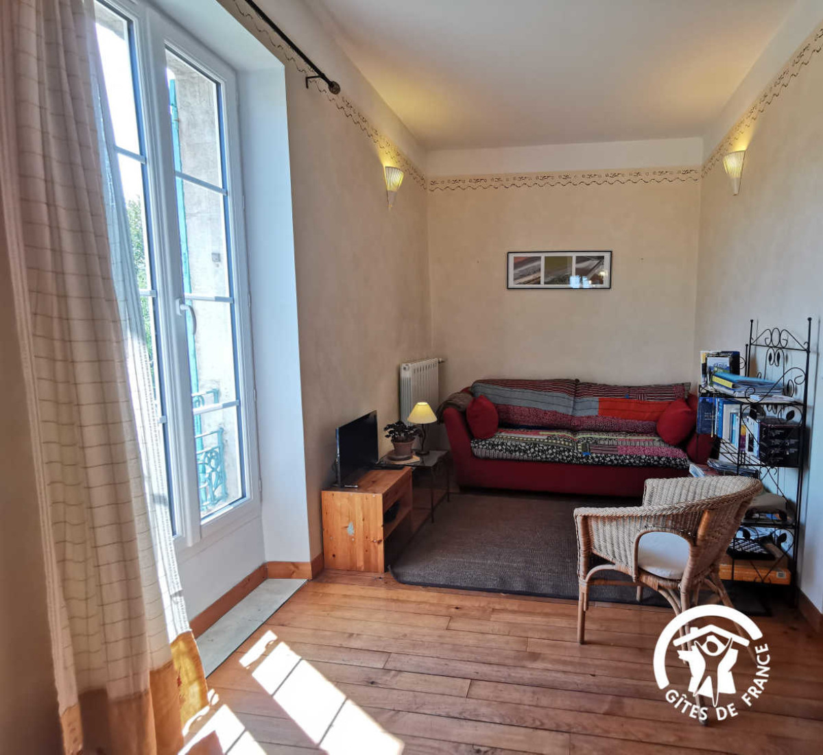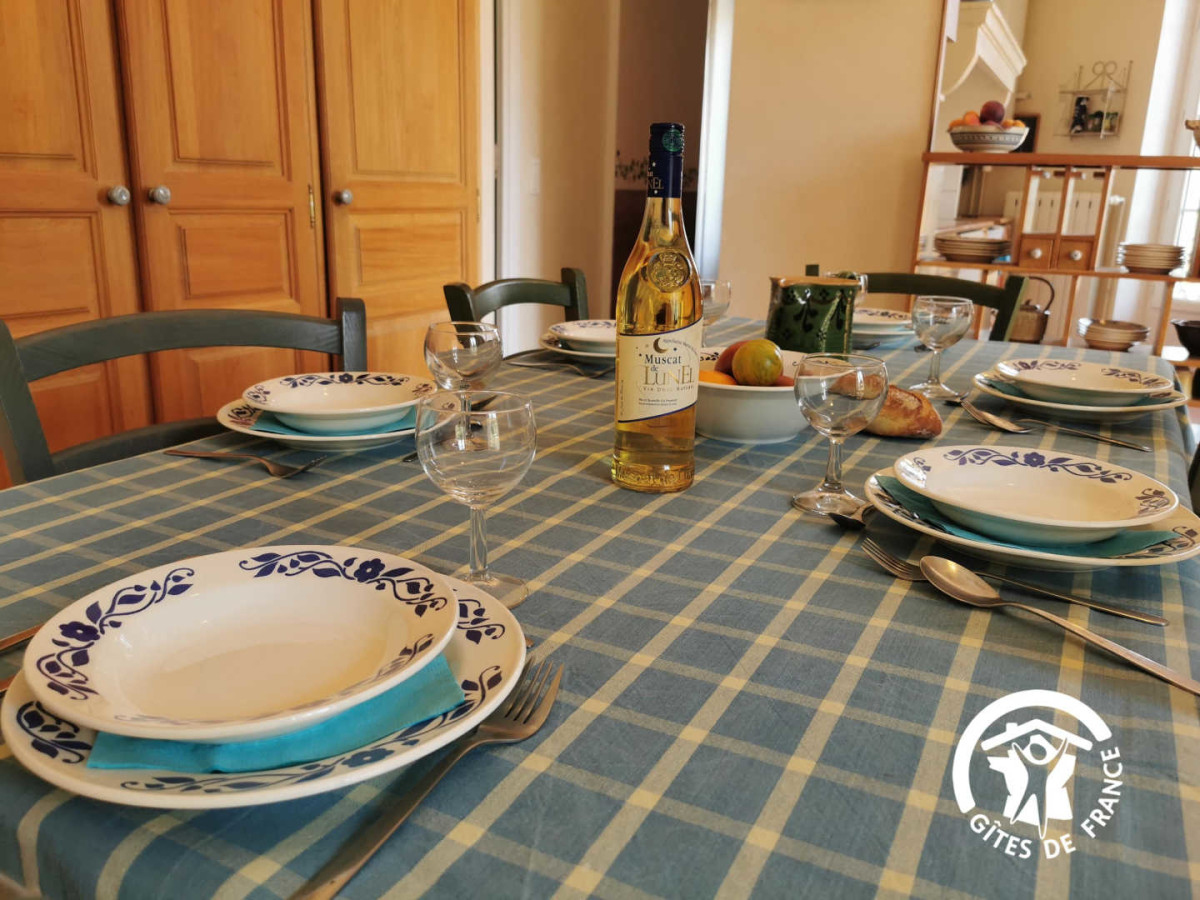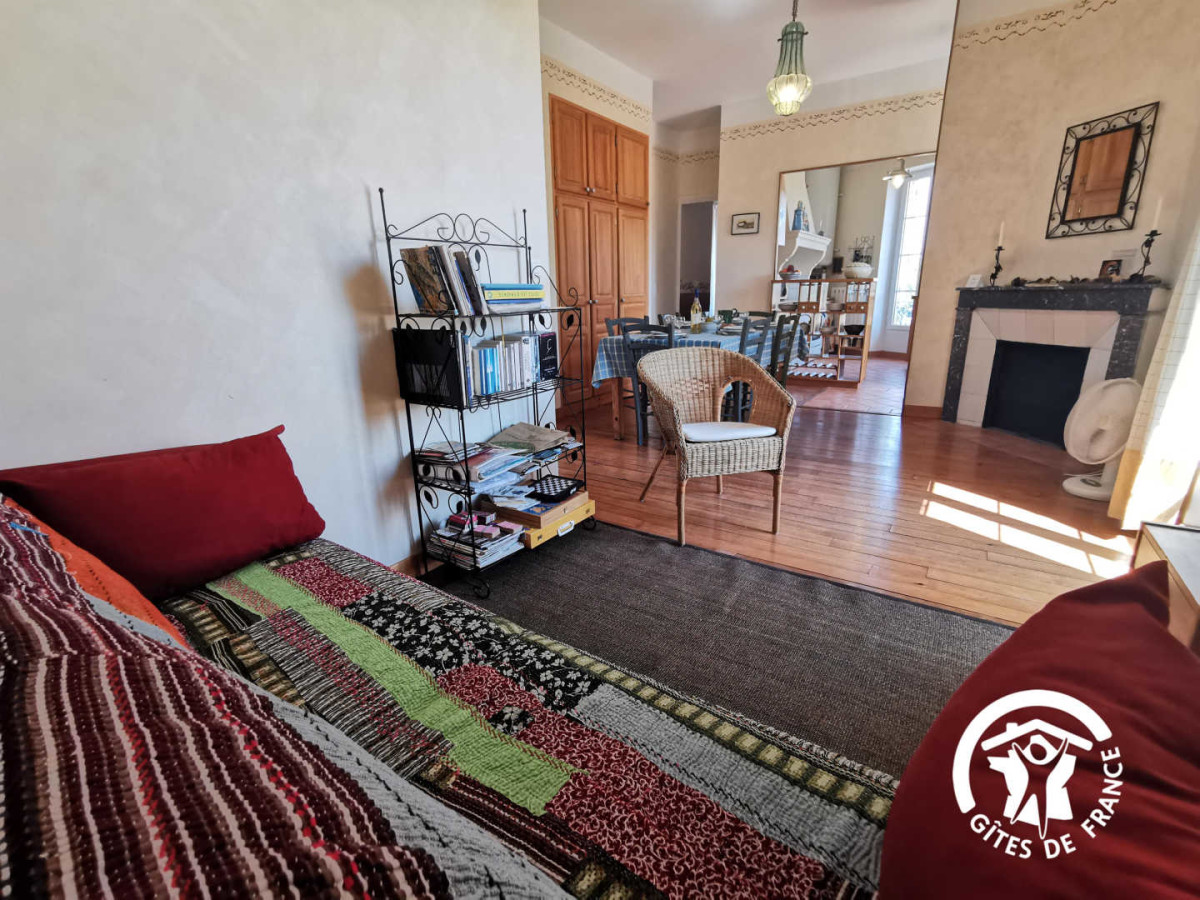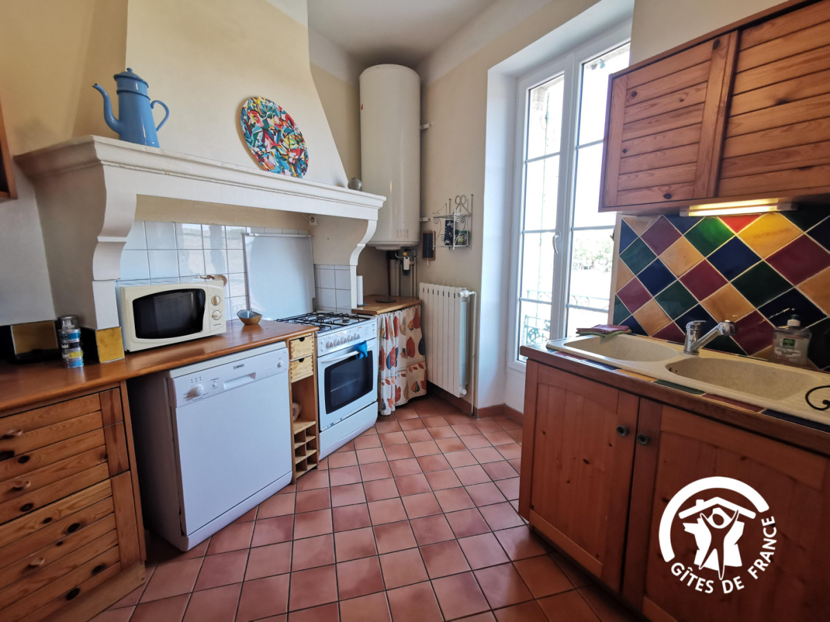 Ce gîte vous séduira par ses nombreux atouts. Il est mitoyen au logement des propriétaires qui sont artisans d'Art (Atelier de Céramique sur place) et situé au premier étage de la bâtisse avec coin-cuisine, salle à manger/espace salon, 3 chambres ayant chacune sa salle de bains (1 lit double 140x190 et 4 lits simples 80x190).TV, climatisation. Chauffage central en supplément. Ménage fin de séjour, draps et linge de toilette en option. Terrasse, salon de jardin, barbecue, espace privatif dans jardin.