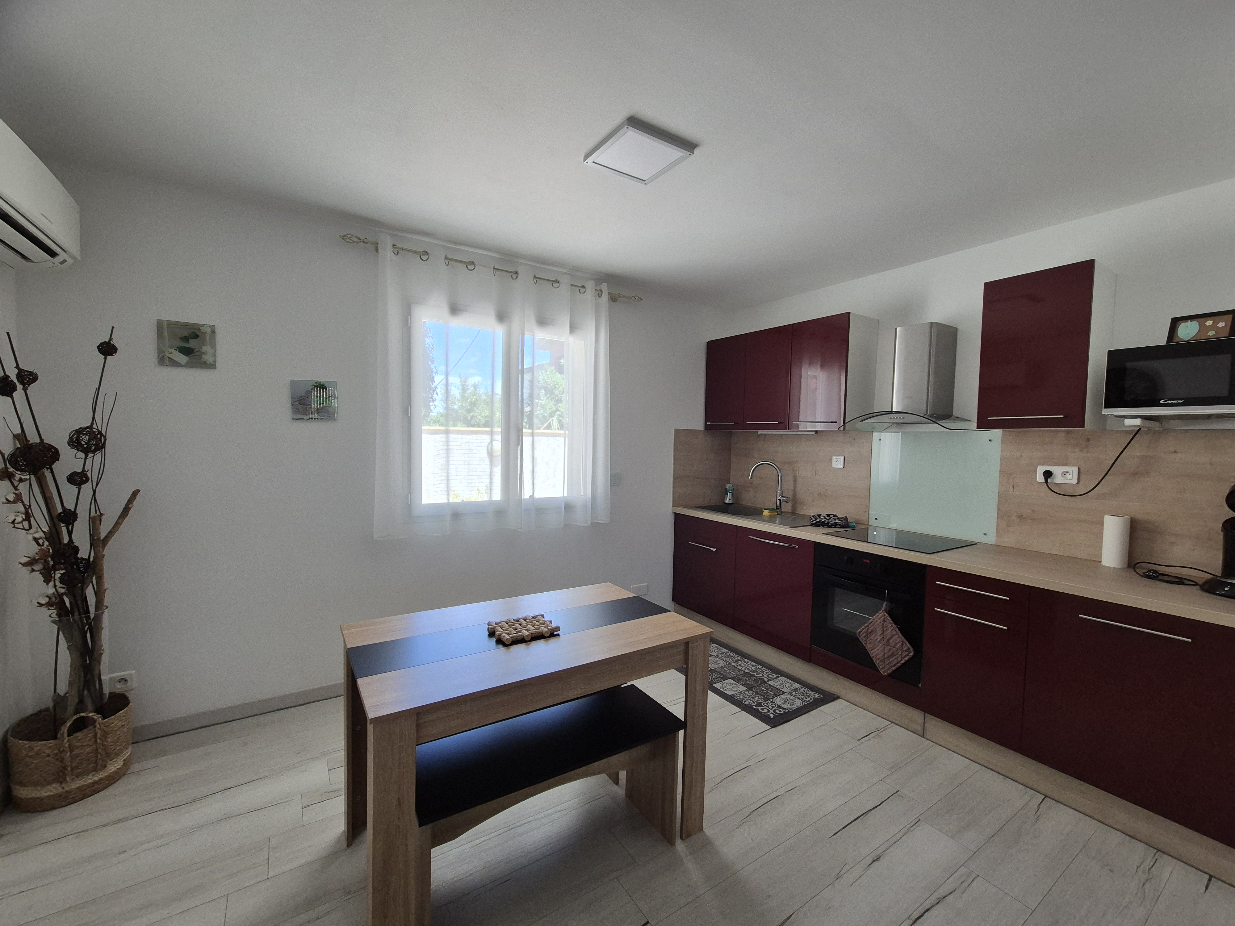 A 10 mn à pied du centre ville, appartement totalement climatisé, de plain pied d'environ 50 m², agrémenté d'une terrasse et d'un parking privatif et fermé.